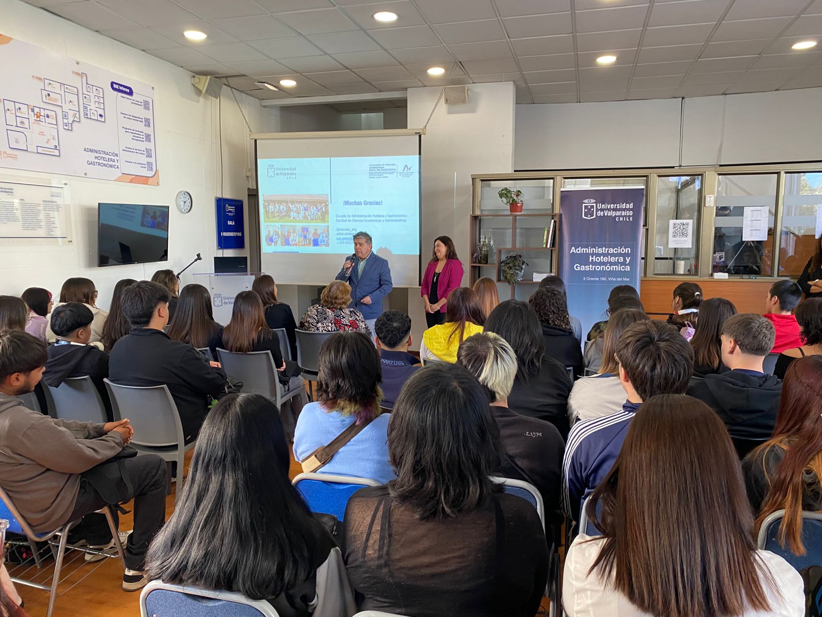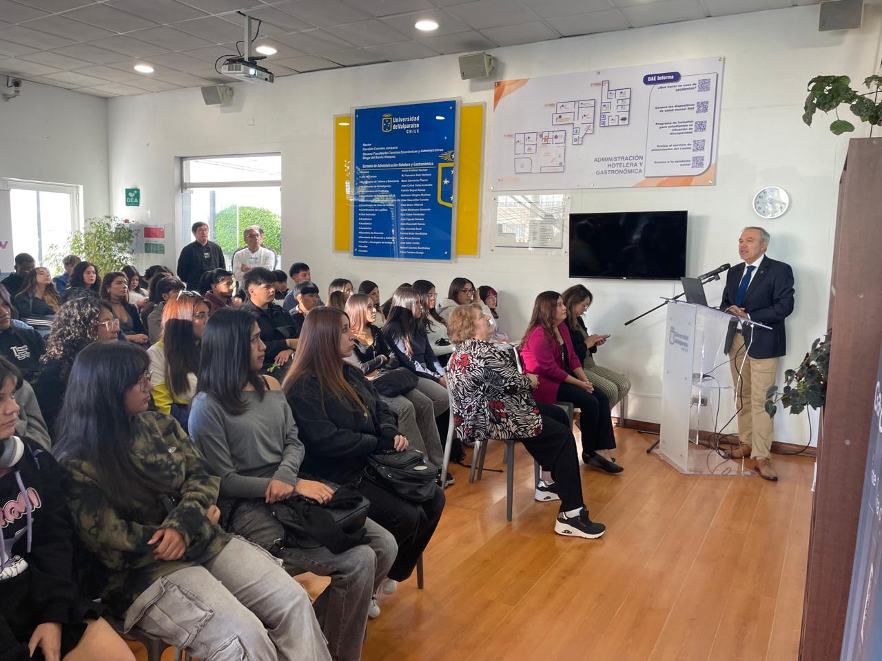 La Escuela de Administración Hotelera y Gastronómica de la Universidad de Valparaíso realizó una jornada de bienvenida para estudiantes de primer año, encabezada por la dirección de la Escuela y con la presentación del cuerpo académico.